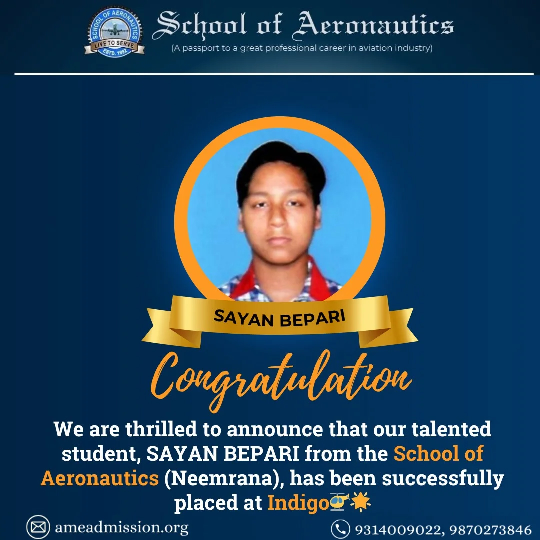 The School of Aeronautics shaped my entire aviation journey. The blend of theory, practical training, and mentorship helped me secure my first job with confidence.