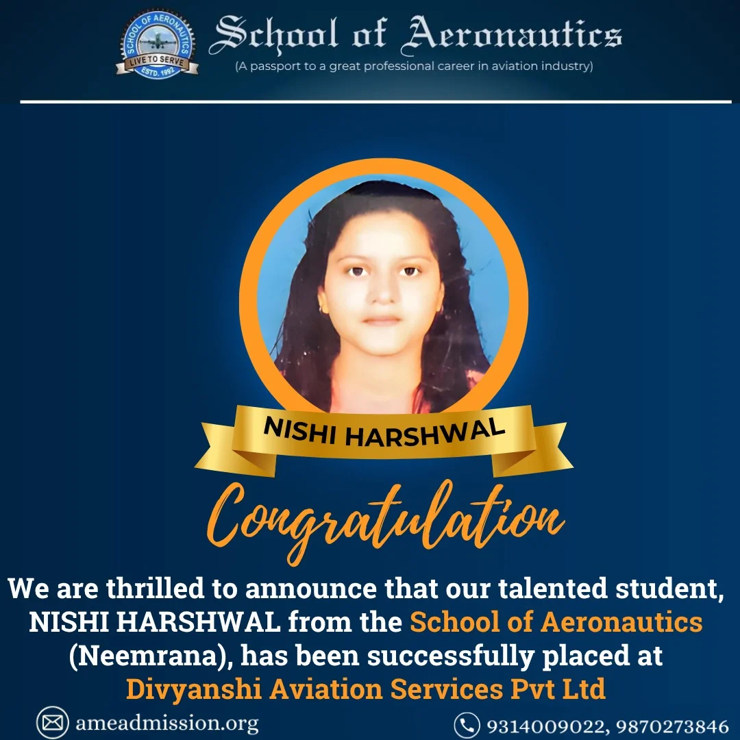 School of Aeronautics established in 1992, since then we are into providing world class Aviation Education into the field of Aeronautical Engineering, Aircraft Maintenance Engineering and CabinCrew programs. School of Aeronautics (Neemrana) was established in 2006, after successfully running School of Aeronautics (Delhi) for 14 years. The managing body is Laxmi Narain Verma Memorial Society, is founded in the loving memory of Shri L.N. Verma and registered under Societies registration Act XXI of 1860, registered at New Delhi.